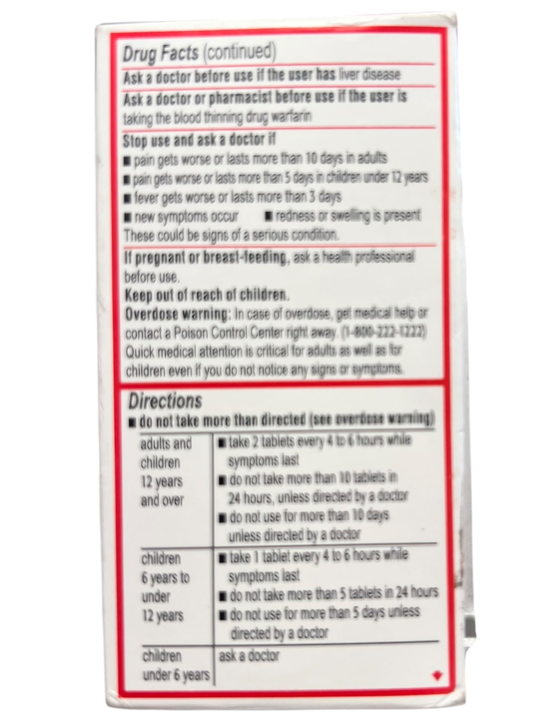 Acetaminophen 325 mg (Pain Reliever/Fever Reducer)